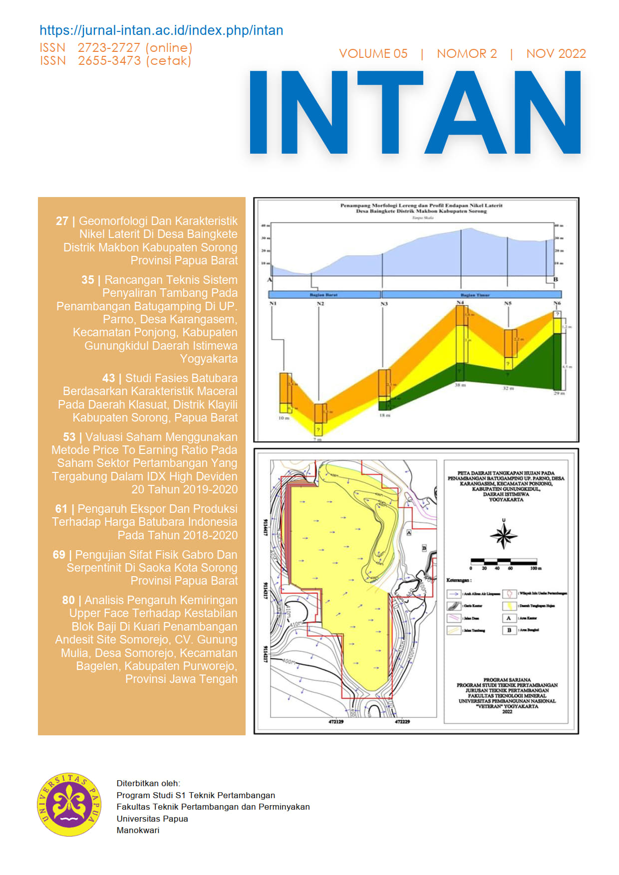 INTAN Jurnal Penelitian Tambang Volume 6 Nomor 1 Edisi Mei telah terbit.