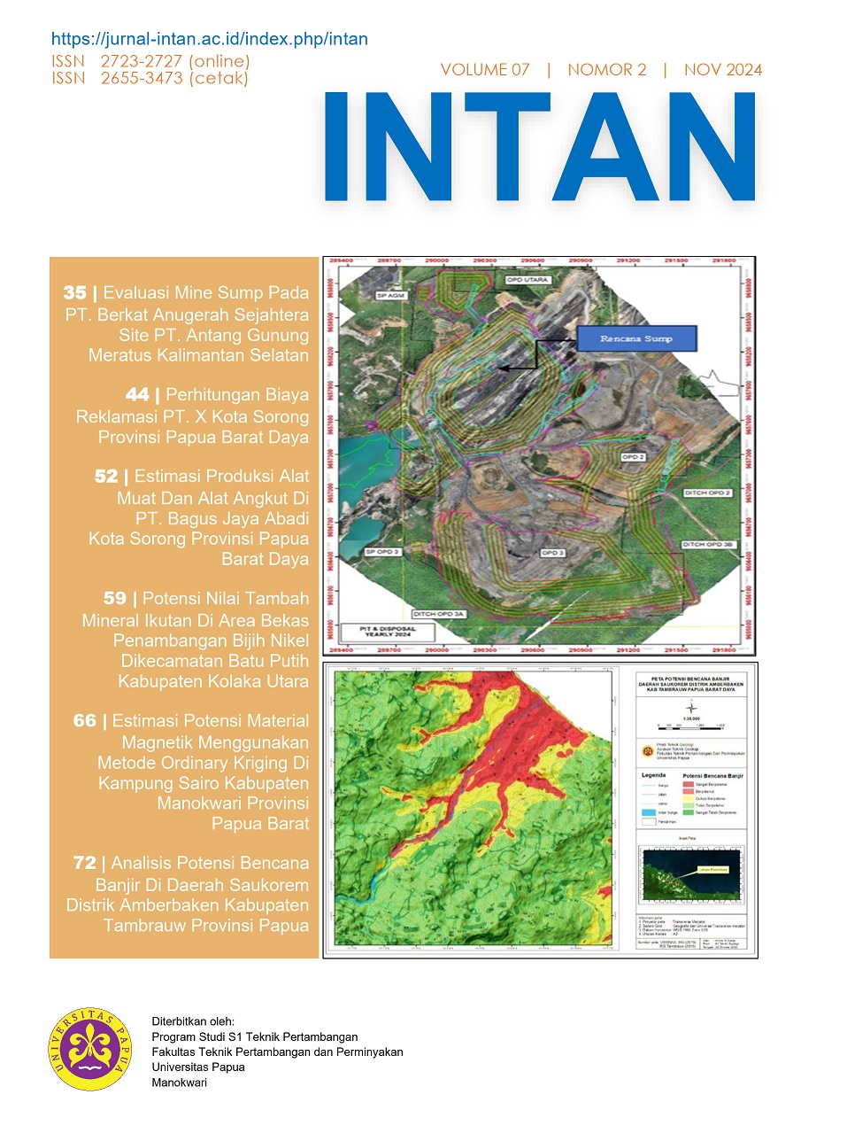 INTAN Jurnal Penelitian Tambang Volume 2 Nomor 2 Edisi Mei telah terbit.