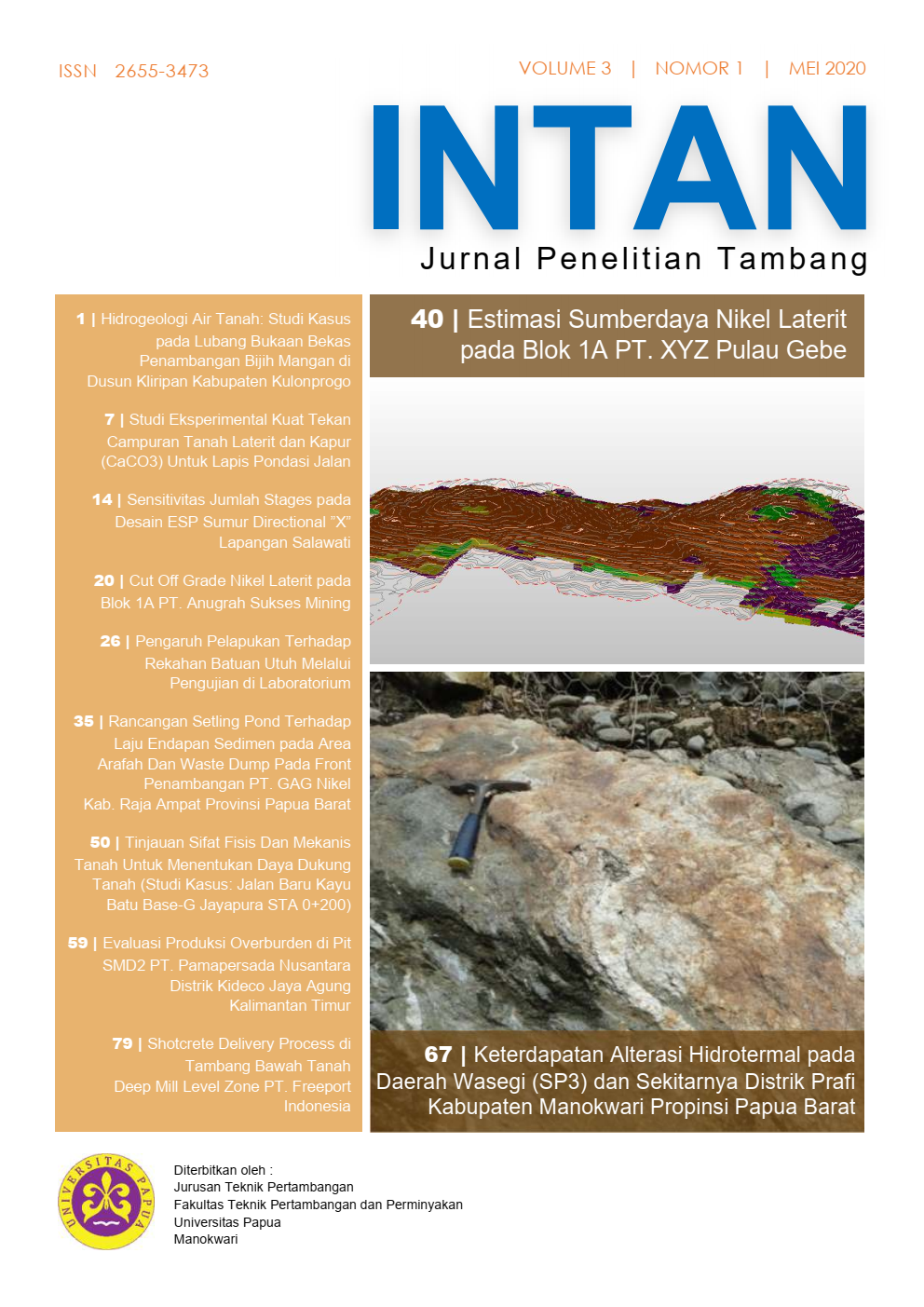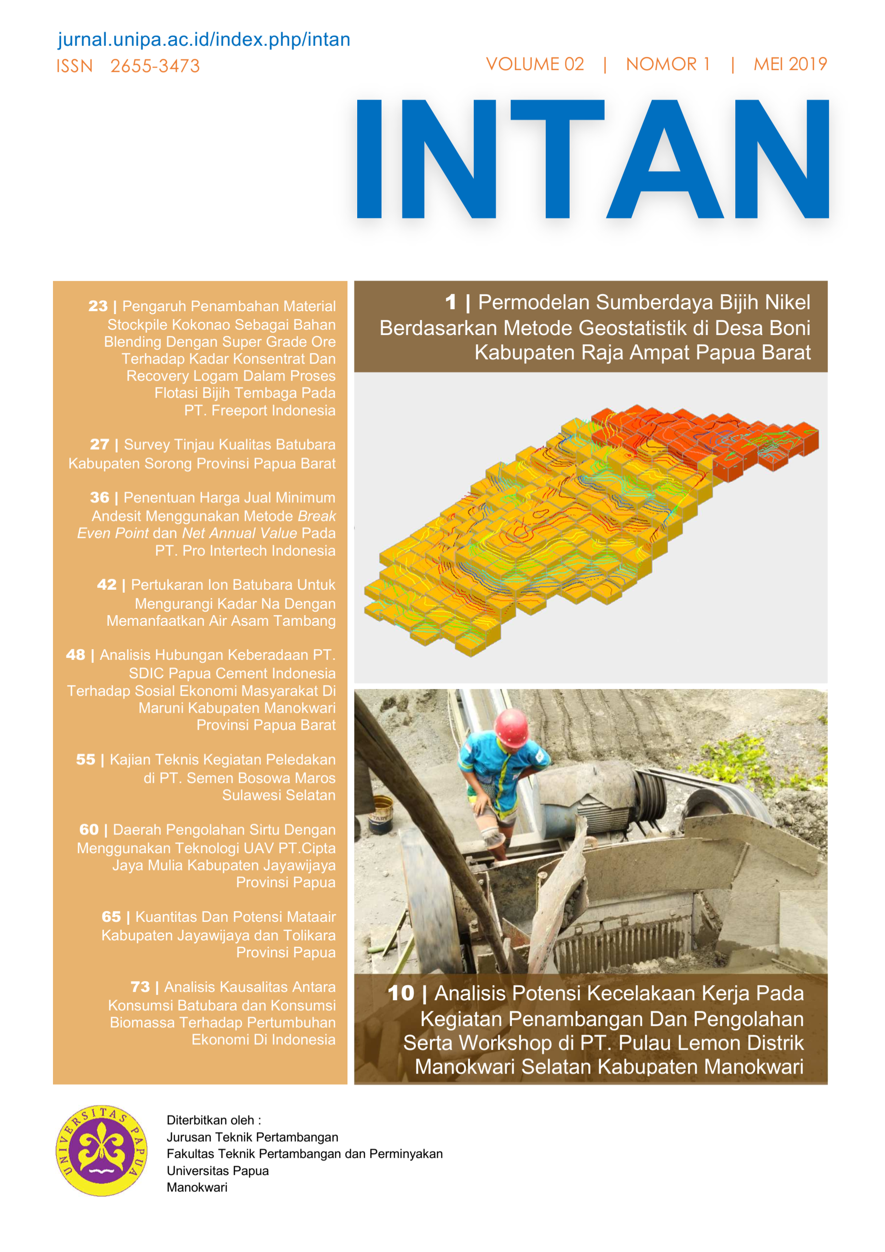 INTAN Jurnal Penelitian Tambang Volume 3 Nomor 1 Edisi Mei telah terbit.