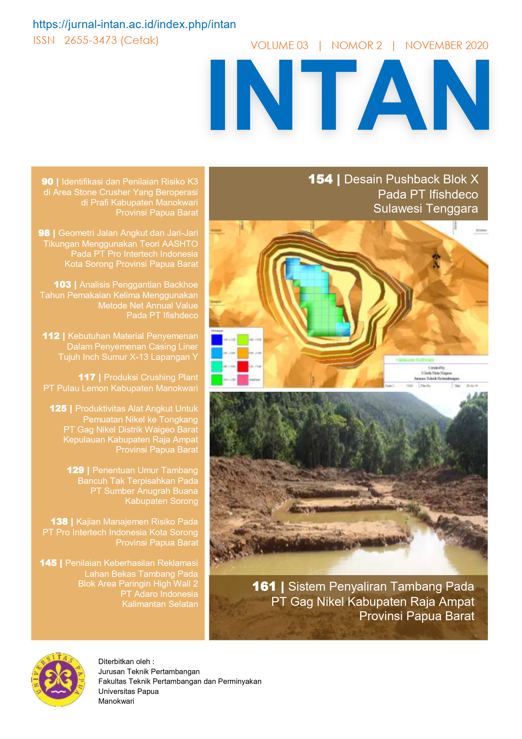 INTAN Jurnal Penelitian Tambang Volume 3 Nomor 2 Edisi November telah terbit.